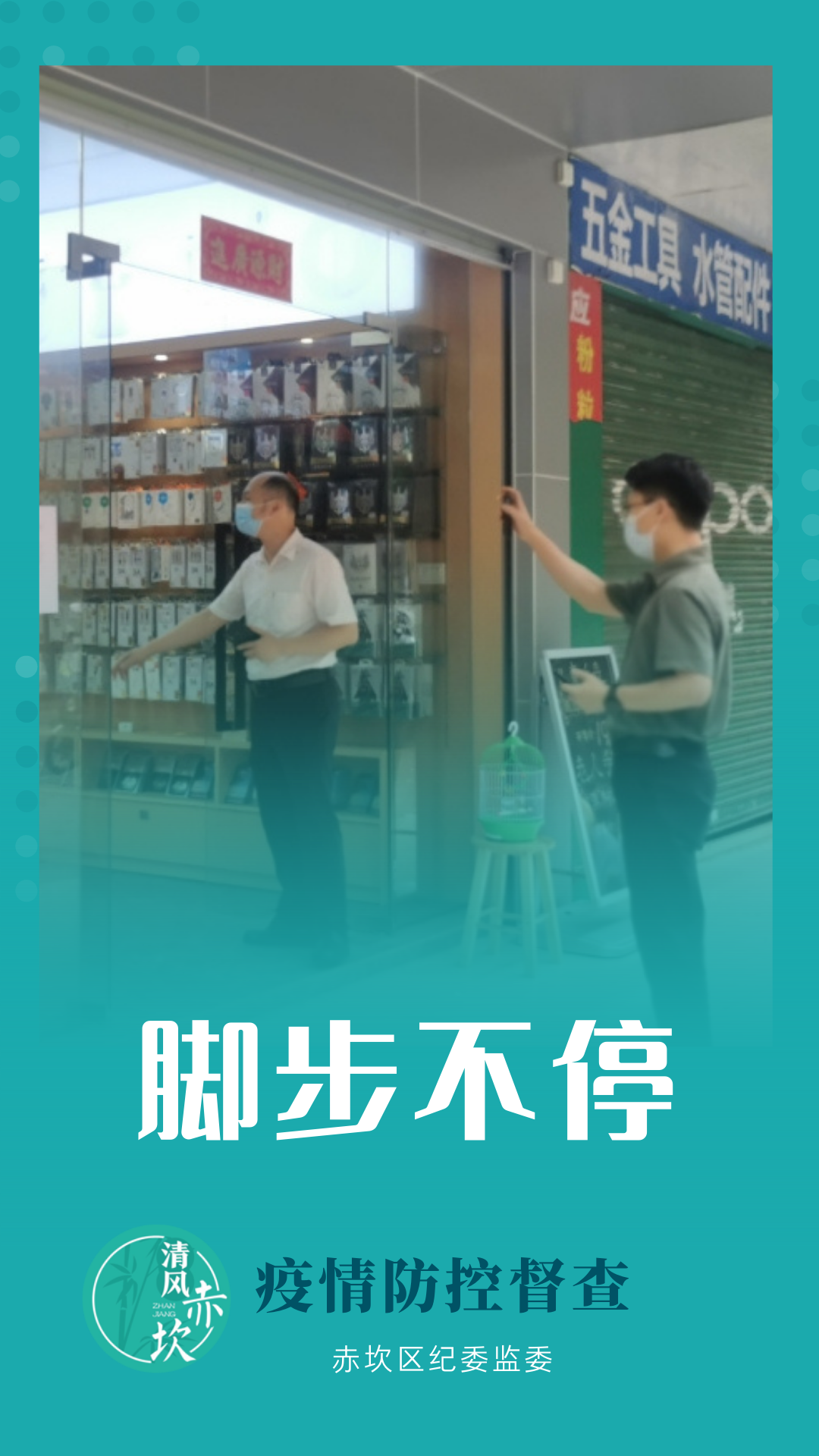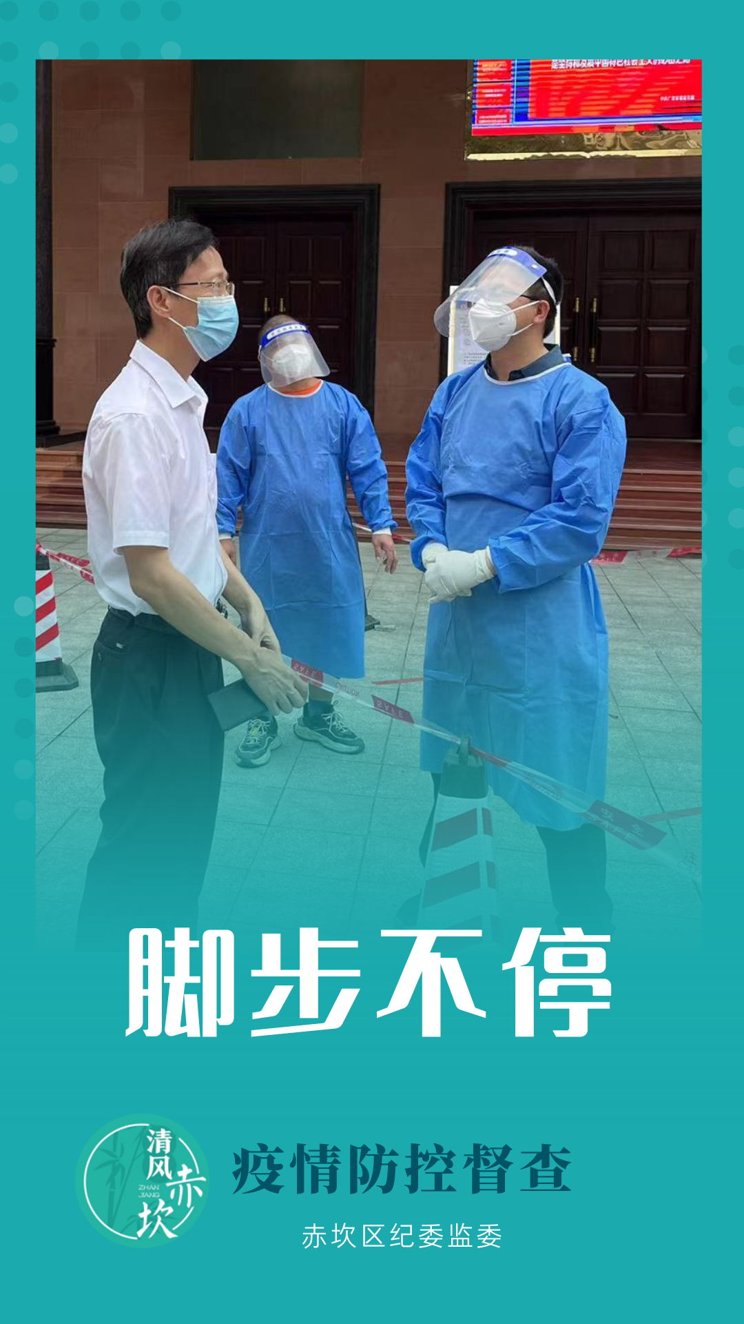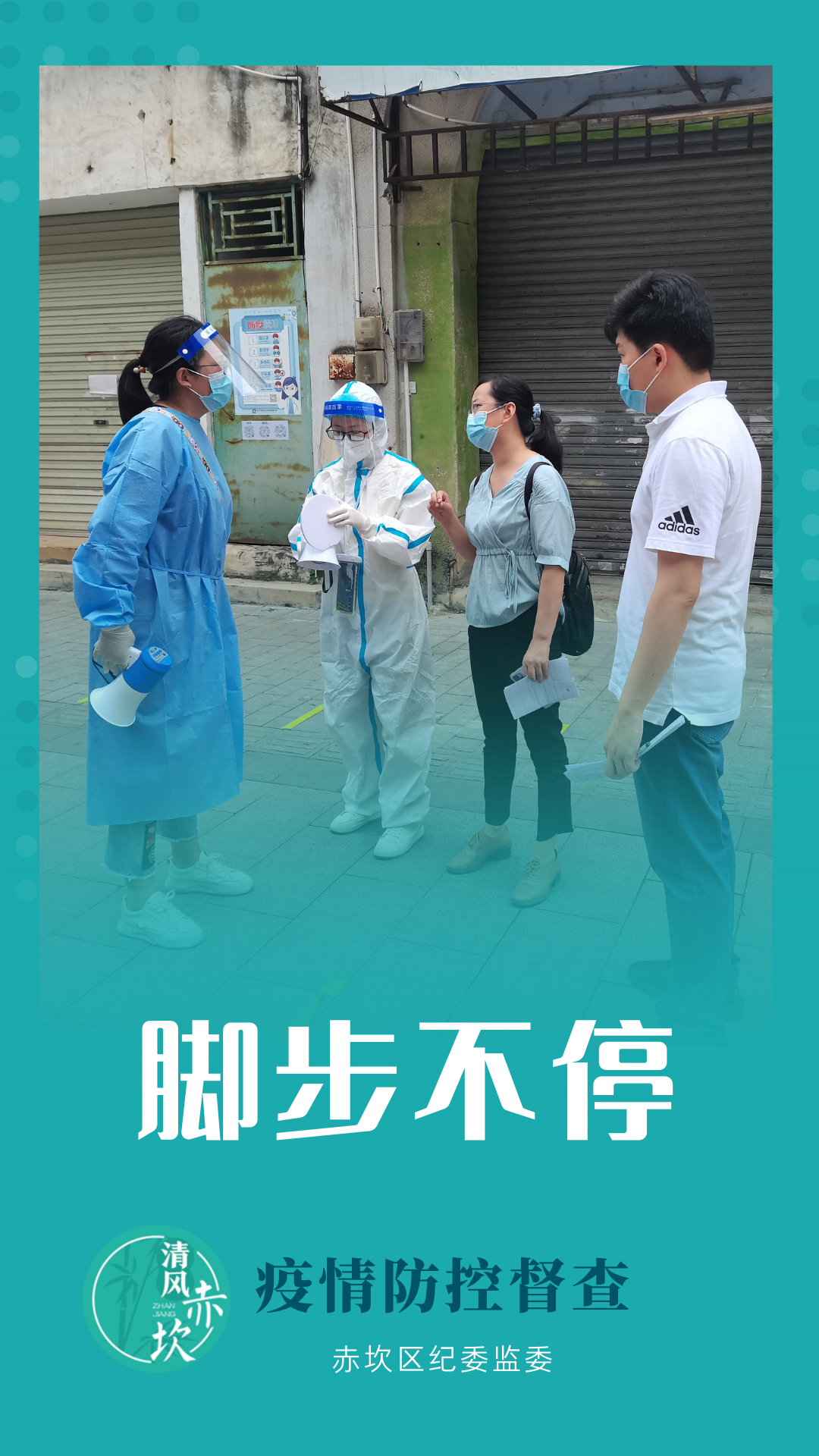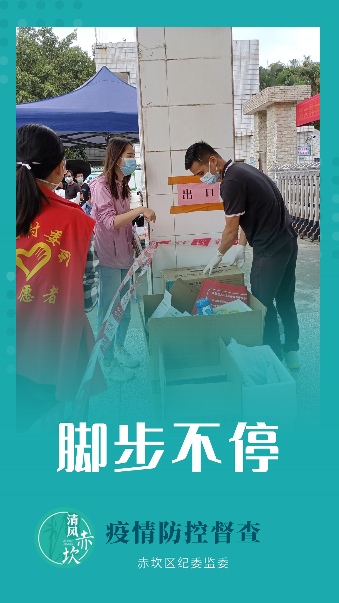 赤坎区纪委监委坚持靠前监督、联合监督、靶向监督,进一步压紧压实疫情防控督查责任,坚决当好防疫卫士,我们在路上。