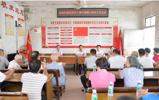 为进一步加强基层党员干部廉政教育、警示教育,结合“以案治本”工作,在基层党员干部中筑起牢固的勤政廉政思想道德防线。近日,赤坎区纪委监委赴北桥街道东山村委会召开赤坎区基层党员干部专题警示教育工作会议。区委常委、区委办主任、区纪委副书记、区监委副主任李观进,东山村“两委”干部及东山村全体党员干部共50余人参加了会议,会议由区纪委常委、区监委委员钟炳平主持。