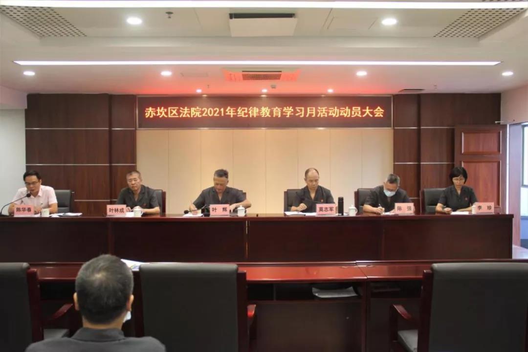 近日,赤坎区法院召开以“学党史悟思想,守纪律铸忠诚”为主题的纪律教育学习月活动动员大会,区纪委监委驻区法院纪检监察组组长、区法院党组成员陈华春同志在会上作专题警示教育辅导。