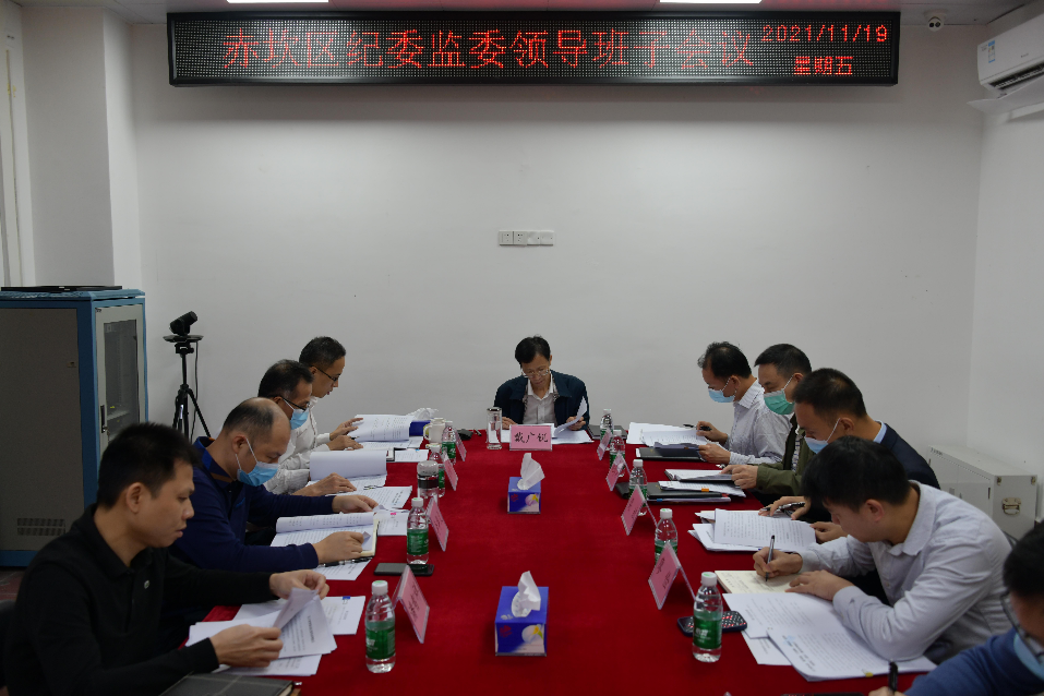 11月19日,赤坎区纪委常委会召开会议传达学习了党的十九届六中全会精神。区委常委、区纪委书记、区监委主任戴广锐同志主持。