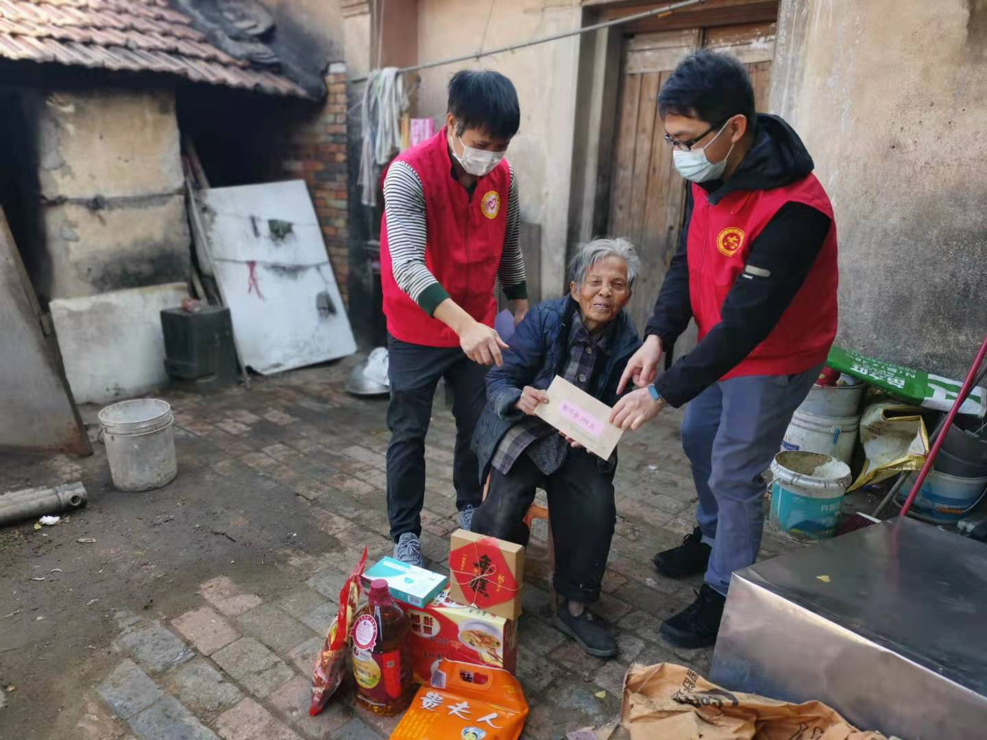 (青年工作委员会志愿者向孤寡老人发放慰问金)