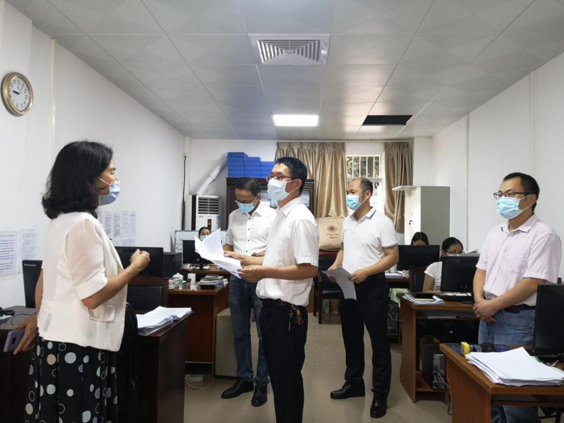 6月25日上午,市纪委常委、市监委委员蔡齐旺同志一行二人到赤坎区调研督导疫情防控工作,区纪委副书记、区监委副主任谢春晖,区纪委常委李华文等同志陪同调研。