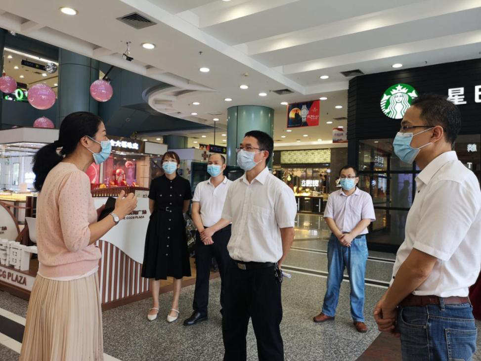 随后,调研组先后来到环球大海湾酒店、世贸商场了解进出口处体温检测、出示粤康码、戴口罩等防控措施落实情况以及疫情期间商铺经营情况。