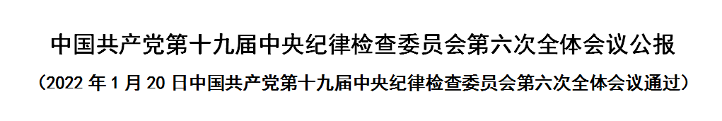 中国共产党第十九届中央纪律检查委员会第六次全体会议公报